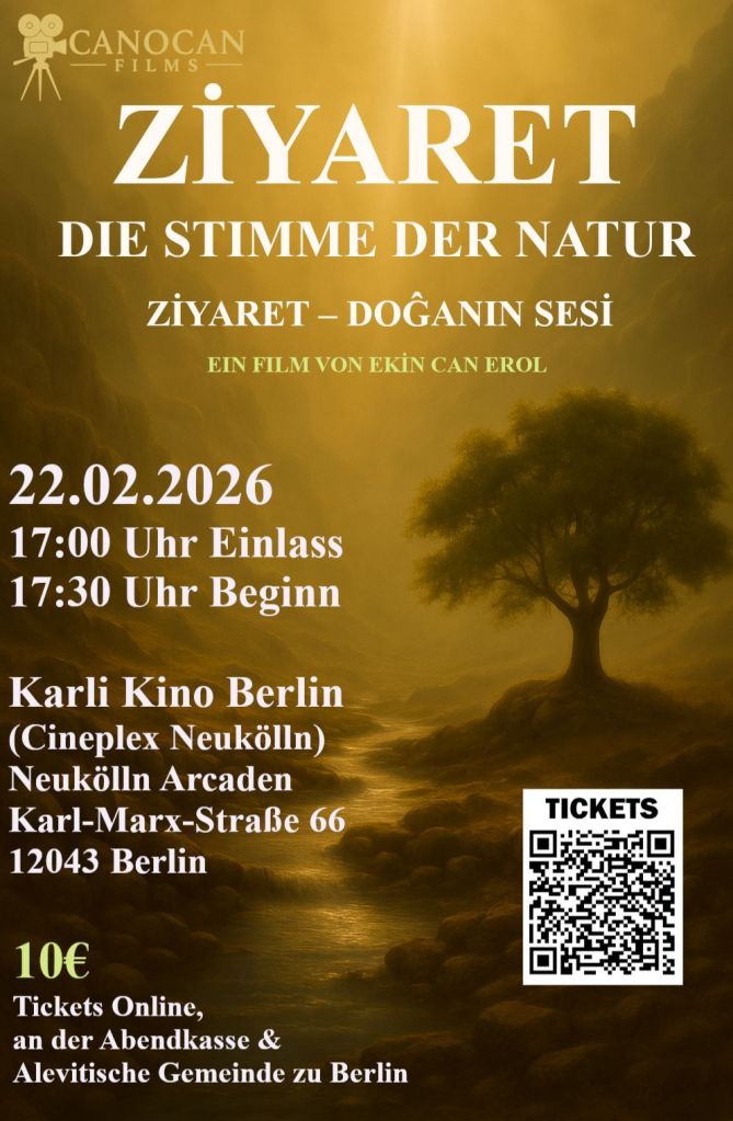 Ziyaret – Die Stimme der Natur ist eine persönliche und filmische Reise zu den heiligen Orten des Alevitentums. Ziyarets – Berge, Quellen, Bäume oder Steine – stehen für Erinnerung, Schutz, spirituelle Kraft und die tiefe Verbundenheit zwischen Mensch, Natur und Glauben.