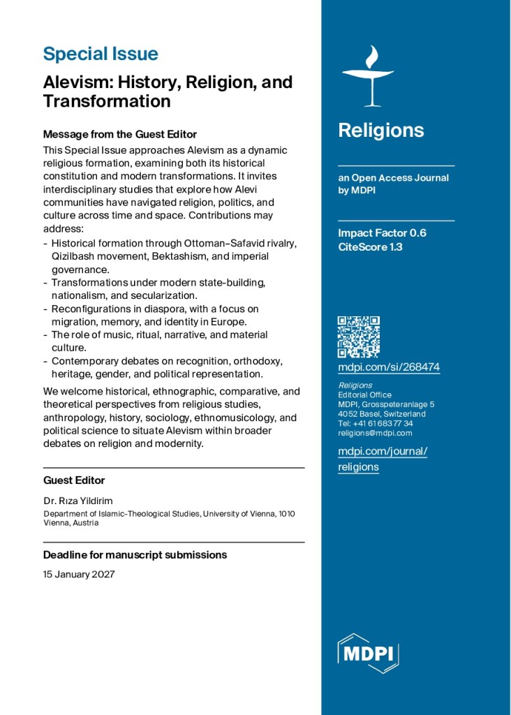 This Special Issue aims to make a significant scholarly intervention in the field of Alevi Studies by bringing together historically grounded and theoretically informed interdisciplinary perspectives on Alevism across time and space. It invites contributions that address the historical formation of Alevism, its religious, cultural, and political dimensions, as well as its transformations in modern and diasporic contexts. The Special Issue seeks to advance comparative and critical debates by situating Alevism within broader discussions on religion, modernity, and social change.