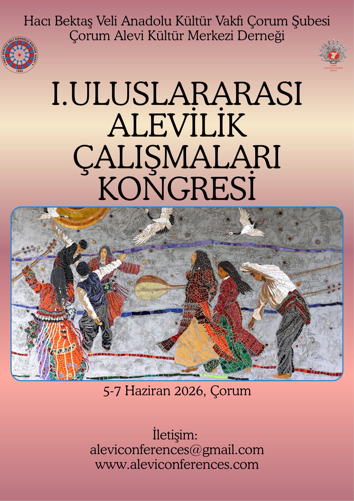 Modern dönemde yaşanan siyasal dönüşümler, kentleşme, göç ve diaspora deneyimleri Alevi topluluklarının kimliklerini, pratiklerini ve kurumsal yapılarını önemli ölçüde dönüştürmüştür. Bu dönüşüm süreci, Alevilik üzerine yapılan akademik çalışmaların kapsamını ve çeşitliliğini de artırmıştır. Son yıllarda Alevilik üzerine akademik çalışmalar önemli ölçüde artmış olsa da bu çalışmaların araştırmacılar, kültür temsilcileri ve inanç önderleri arasında doğrudan diyalog kurabileceği platformlar sınırlı kalmaktadır. Bu ihtiyaçtan hareketle 5-7 Haziran 2026 tarihlerinde Hacıbektaş Veli Anadolu Kültür Vakfı Çorum Şubesi ve Çorum Alevi Kültür Merkezi Derneği tarafından düzenlenecek olan Çorum Alevi Kültür Şenliği kapsamında I. Alevilik Çalışmaları Kongresi gerçekleştirilecektir.